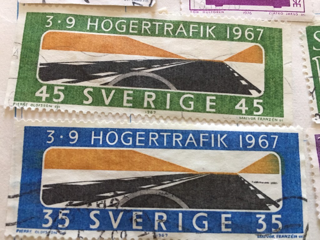 A treat for you today – not one stamp, but two! I’m just excited that the Swedes created a set to mark the occasion of Dagen H…