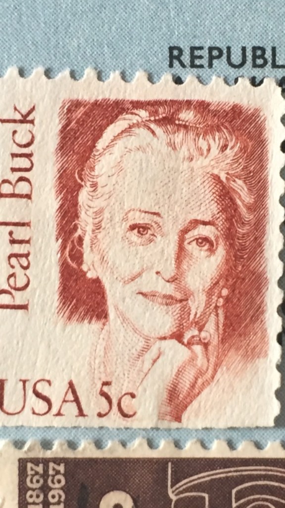 I confess: I’d never heard of Pearl Buck before finding her stamp in an old album, but I’m intrigued. She lived through significant political and military upheaval when she was in China; she was the mother of a disabled child; she went on to adopt further children after a hysterectomy following a uterine tumour; she was active in the US civil rights movement; and she worked throughout her life to foster better relationships between the US and Asia. Oh and she wrote more than 40 novels, plus short stories and non-fiction pieces throughout her life.
