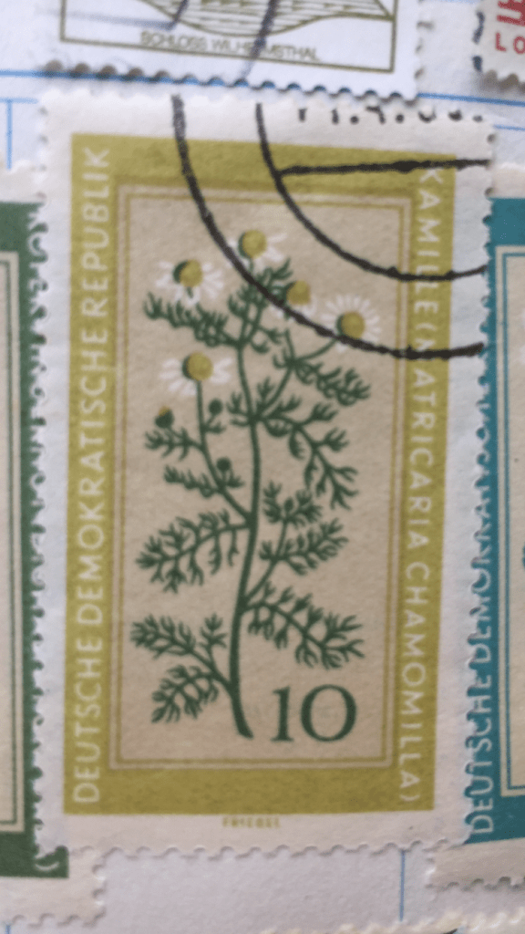 Chamomile is native to southern and eastern Europe but can now be found growing all around the world. Its daisy-like flowers contain a blue oil which is how we derive essential oils and remedies related to the plant. Its official name in the taxonomy is maticaria chamomilla. Chamomilla comes from the Greek meaning “earth-apple” or “apple-of-the-ground” and relates to the plant’s scent. Matricaria is thought to relate to the Latin matrix meaning womb, because of chamomile’s soothing effect on menstrual cramps and pre-menstrual syndrome.