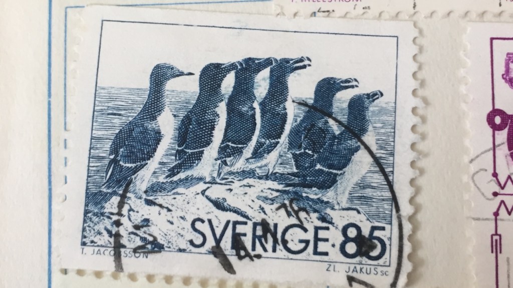 This took some detective work due to the absence of captions on the stamp. But no, they are not penguins; they are indeed razorbill auks.