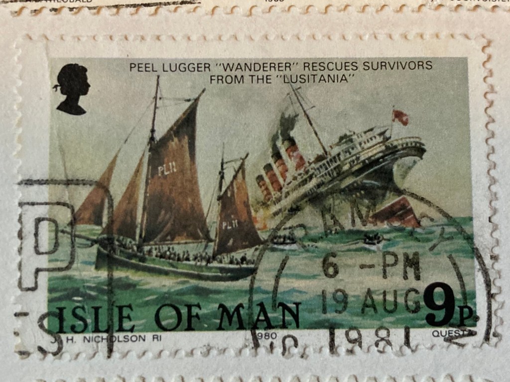 The first boat on the scene after the torpedo attack was the Wanderer, a lugger from the fishing port of Peel on the Isle of Man, just off the west coast of mainland Britain. The crew of seven sailed straight for the Lusitania and rescued 160 people from the Irish Sea, sailing them towards shelter in Kinsale, Ireland where they were aided by a Navy boat. The Wanderer then sailed back to the sinking Lusitania but was unable to find any further survivors.