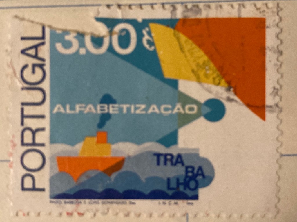 By way of context, Portugal had been through significant polictical change during 1974 and 1975. The Carnation Revolution of 1974 had seen a military coup and the overthrow of the authoritarian Estado Novo regime. It was a coup with minimal violence and the peaceful gesture of people handing carnations to soldiers, hence the name. There followed a period of upheaval and rivalry between left and right, before free elections on 25 April 1976 (the second anniversary of the Carnation Revolution) brought in a strange but necessary coalition of socialists and conservatives who had to collectively figure out what to do next. Economic recovery was a huge priority after years of authoritarianism and expensive military engagements, hence perhaps the focus on skills and employment in this stamo.