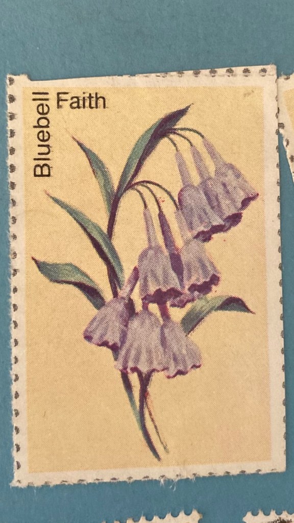 I’m conscious that I’ve missed a few days here and there recently. As with everything that you start with enthusiasm, after a while it becomes a bit of a routine and then it’s easy to forget… So I thought I’d come back in full strength today with a nice floral tribute to the bluebell which is affixed to the Australia page alongside a lot of stamps from the early 1980s. Flower stamps are always straightforward to find, especially when they kindly have their name printed on them. Bluebell. Faith. Australia. Simple enough, right? It’s even sitting next ot a very similar image of a Lily of the Valley, entitled Happiness. So I could riff about the whole set…