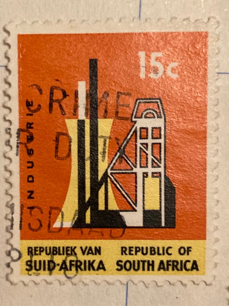 This stamp is also part of a series called the “republic” issue. The Union of South Africa had existed since 1910 but it was re-established in 1961 by the Republic of South Africa. A new constitution also came into force. The country decided by 52% to 47% to step away from being ruled by the British monarchy and stand on its own; the role of the Queen was replaced by a State President.