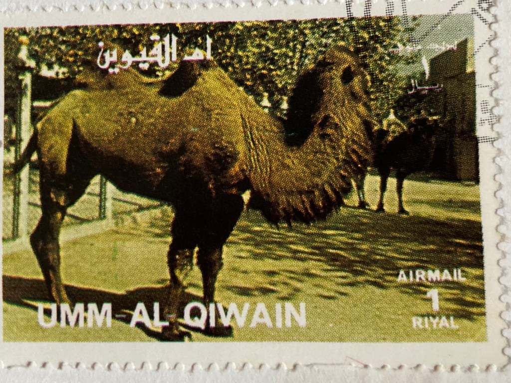 So here is a rather awesome camel from Umm Al Qiwain, circa 1973. Umm Al Quwain is one of the seven emirates that make up the United Arab Emirates. It is the second smallest of the Emirates and home to around 72,000 people. It lacks the fossil fuel reserves of many of its neighbours and so relies on tourism and visitor economy for its main activities. Much of this emphasises traditional Arabic crafts. And it is also home to a very active camel racing scene.